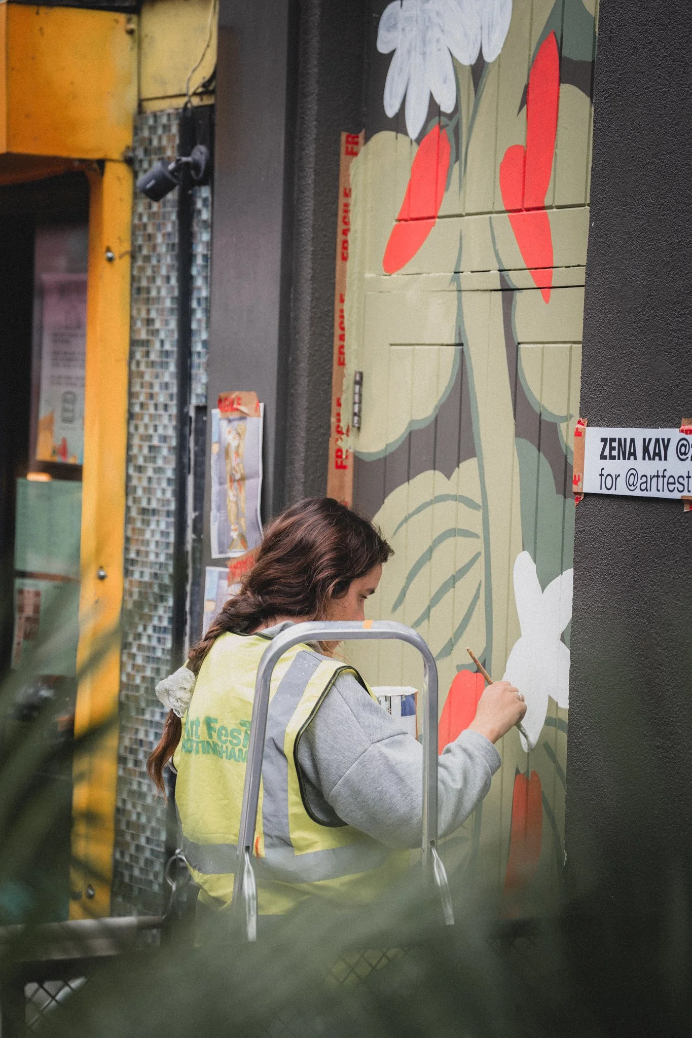 She has participated in numerous mural exhibitions including the Nottingham City Library mural, Bridlesmith, and Art Fest. Additionally, she has hosted various workshops for small businesses and festivals.